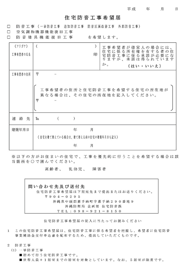 防音工事専用の希望届